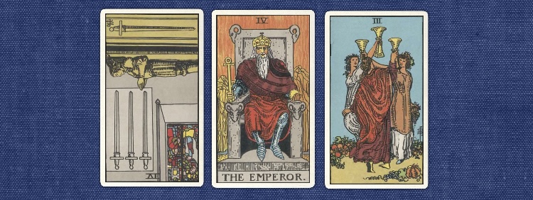 引いたカードは、ソードの4逆位置、皇帝、カップの3でした。解釈としては「4ラウンドあたりから調子が出てきて王者の椅子を守り祝杯をあげる」という、とてもシンプルな読みができるものでした。