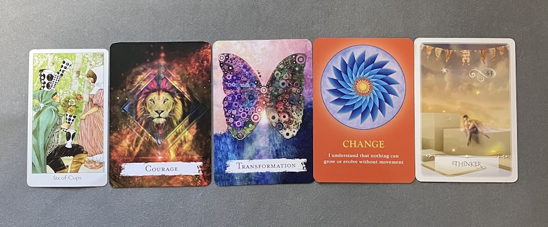 その人は今、あなたのことが頭から離れない状態で何とか関係性を進展させたいと思っているようです。TransformationとChangeといった変化を意味するカードが2枚も出ていますので、その思いは相当強いと言えます。